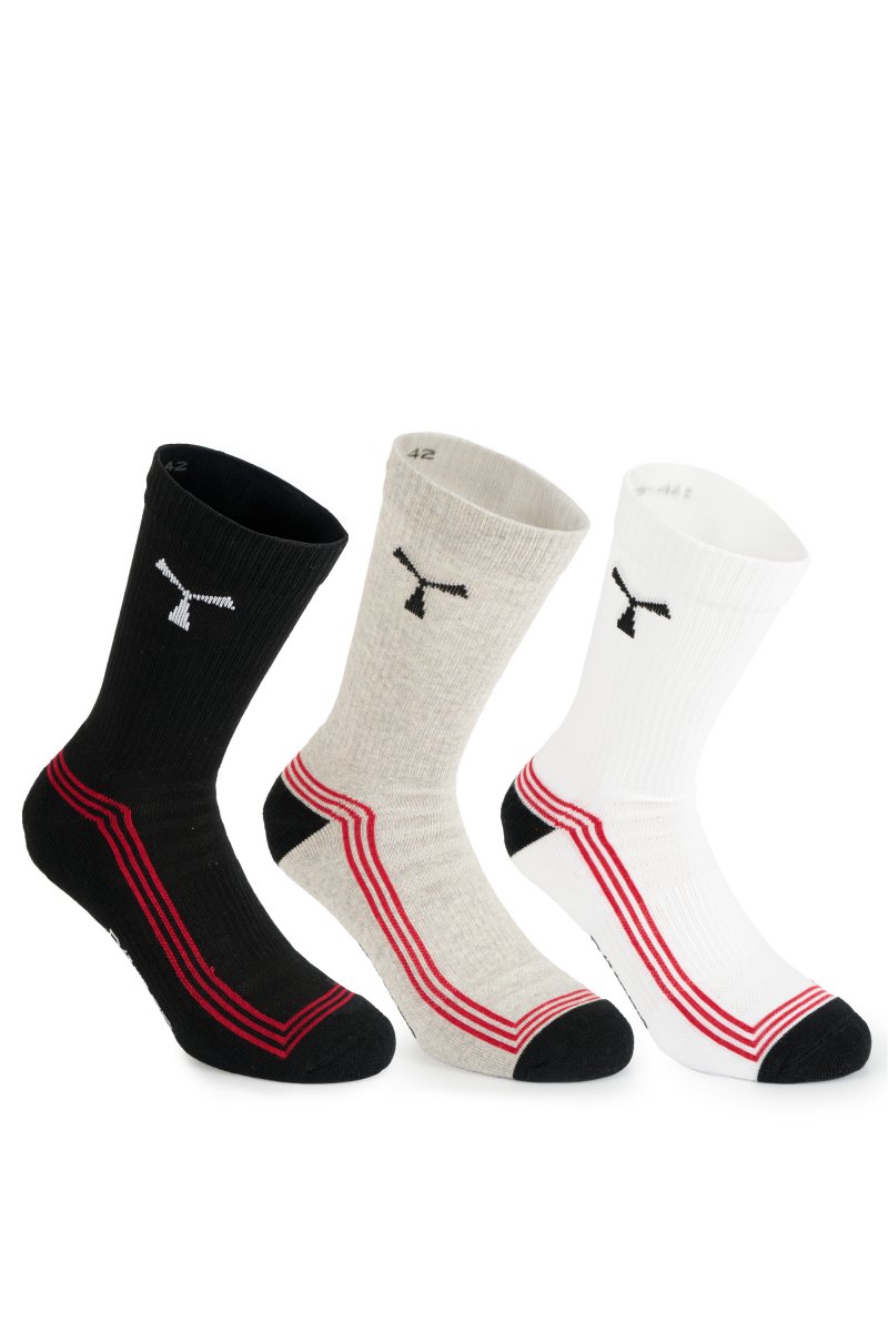 70% Baumwolle OCS + 46% Polyester RCS + 4% Elastan. SOCKEN-HALTER UNTERSCHENKEL-Halbhohe Wadensocke aus Bio-Baumwolle und recyceltem Polyester. Dämpfende Wirkung an Ferse, Zehen und Fußgewölbe. Unverwechselbarer Payper-Propeller am gerippten Rand und Logotyp an der Fußsohle. Mindestverkaufsmenge: 1 Packung mit 6 Stück (3 Paar pro Packung). Das Gewicht bezieht sich auf das Paar.