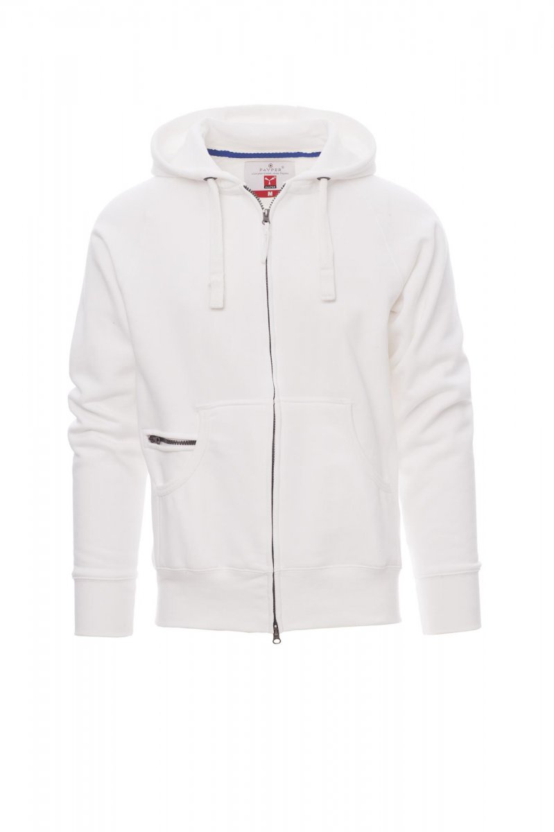 70% Baumwolle / 30% Polyester. Herren-Sweatjacke mit durchgehendem, verdecktem 2-Wege-SBS-Reißverschluss aus Kunststoff mit Metallschieber, Kapuze mit zwei Nähten und weißem Kordelzug, Nähten Ton-in-Ton und Metallösen, Raglanärmeln, Kängurutaschen mit Reißverschlusstäschchen, elastischem Feinripp an Ärmeln und Taille, verstärkten Nähten.