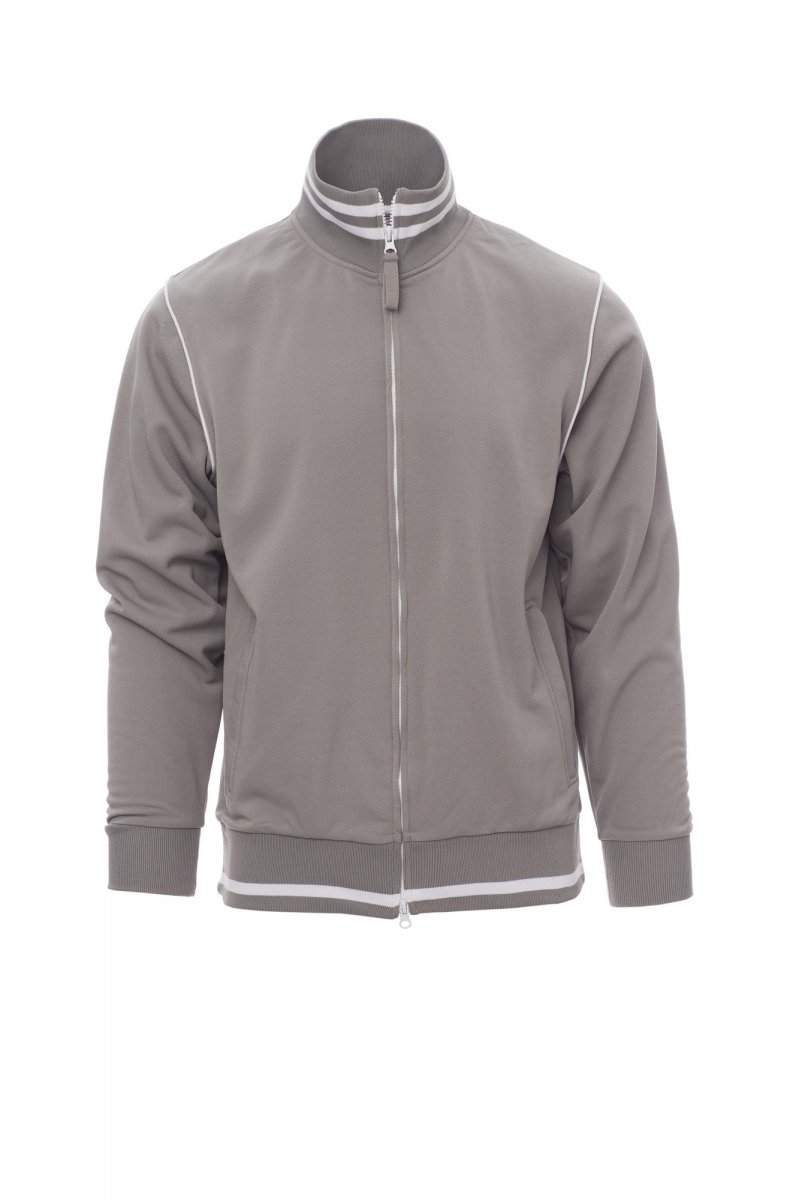 100% Polyester. Herren-Sweatjacke mit durchgehendem, verdecktem 2-Wege-Reißverschluss aus Kunststoff in Kontrastfarbe mit Metallschieber, Rippstrickbündchen mit Kontraststreifen an Kragen und Taille, elastischem Feinripp an den Ärmeln, Paspelierung am Ärmeleinsatz, zwei Seitentaschen mit Reißverschluss, verstärkten Nähten, Piqué-ähnlicher Außenverarbeitung für eine hohe Atmungsfähigkeit des Gewebes.