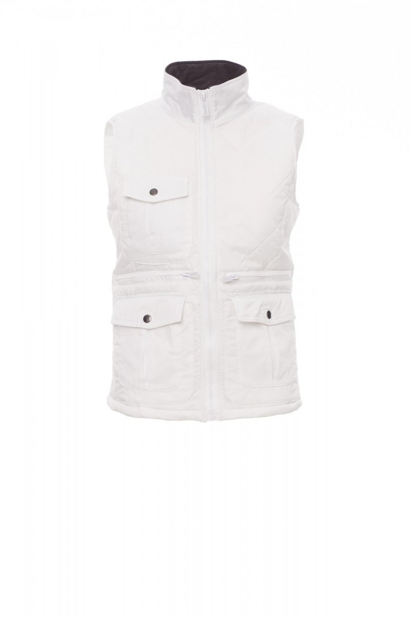 WESTEN_IMBOTTITO SENZA MANICHE_Taillierte Damen-Steppweste, 8 mm Reißverschluss aus Kunststoff mit Metallschieber, Seitenschlitzen mit Knopf, fünf Außentaschen, davon zwei mit LOCK SYSTEM. Innenseite: wattiert, Rippstrickkragen aus Samt, eine Tasche