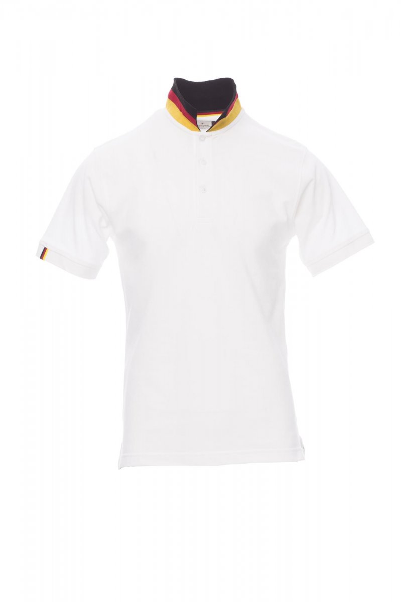 100% Baumwolle. POLOSHIRTS-KURZÄRMELIG-Herren-Poloshirt, kurzärmelig, mit 3 Knöpfen Ton-in-Ton und Perlmutteffekt, Oberseite des Kragens Ton-in-Ton, Unterseite mit den Farben internationaler Flaggen, die nur bei aufgestelltem Kragen sichtbar sind, mit dezentem Einsatz in den Farben der Flagge am rechten Ärmelrand, Kragen und Ärmelrand aus Feinripp, Seitenschlitzen mit den Flaggenfarben, Nackenband aus Jersey in den Flaggenfarben, seitlichem Verstärkungsband, Nackensattel.